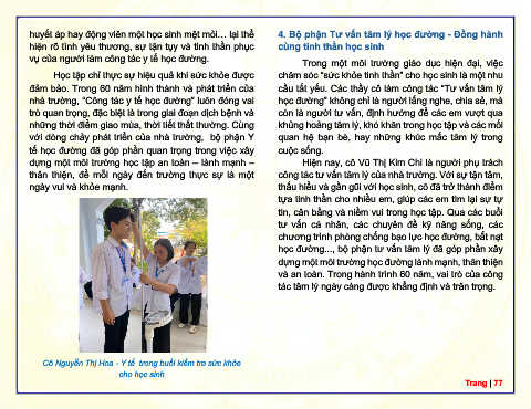 nhà trường, “Công tác y tế học đường” luôn đóng vai học đường” không chỉ là người lắng nghe, chia sẻ, mà