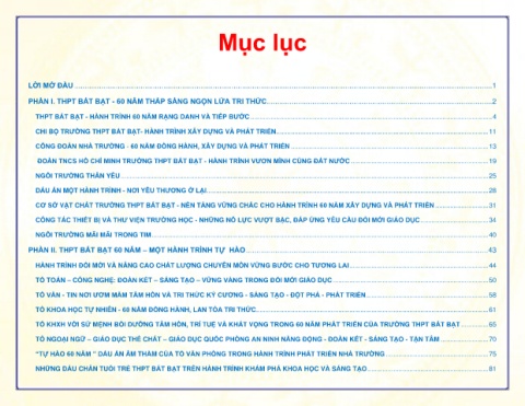 PHẦN I. THPT BẤT BẠT - 60 NĂM THẮP SÁNG NGỌN LỬA TRI THỨC............................................................................................................. 2