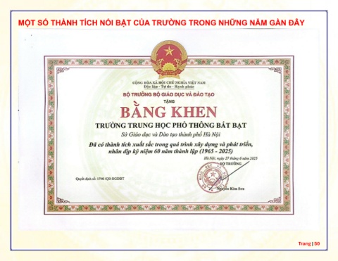 MỘT SỐ THÀNH TÍCH NỔI BẬT CỦA TRƯỜNG TRONG NHỮNG NĂM GẦN ĐÂY Trang | 50