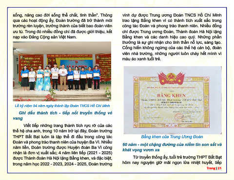 năm liền, Đoàn trường được Huyện đoàn Ba Vì công 60 năm - một chặng đường của niềm tin son sắt và