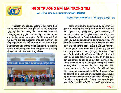 chặng đường dài, chứng kiến biết bao thế hệ thầy trò dành cho mái trường THPT Bất Bạt vẫn vẹn nguyên.