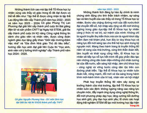 học 2024 - 2025. tâm huyết và khát vọng cống hiến, tổ Khoa học tự
