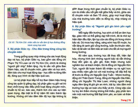 đảm bảo cho mọi hoạt động dạy - học diễn ra đúng tiến sau nhiều năm gắn bó với mái trường; kế tiếp thế hệ