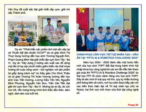 giải nhì cụm Sơn Tây - Ba Vì. Những dự án ấy, dù còn các kiến thức hiện đại về Trí tuệ nhân tạo (AI) và