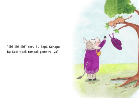 "Eh! Eh! Eh!" seru Bu Sapi. Kenapa Bu Sapi tidak tampak gembira, ya?