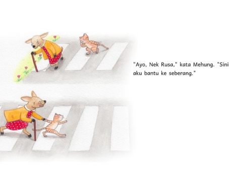 "Ayo, Nek Rusa," kata Mehung. "Sini aku bantu ke seberang."
