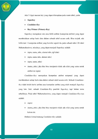 membedakan setiap baris data dalam sebuah tabel secara unik. Sebuah Candidate-