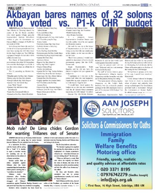 September 2017 / Fortnightly – No. 18 • UK & Europe Edition IMMIGRATION / OFNEWS www.hello-philippines.com 15