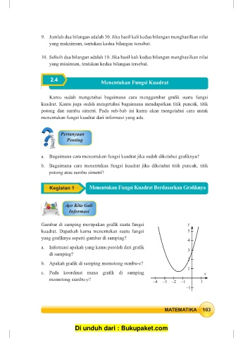 Kegiatan 1 Menentukan Fungsi Kuadrat Berdasarkan Grafiknya