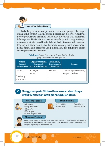 Tabel 4.12 Organ Pencernaan, Enzim dan Zat Kimia