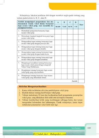 lagu secara vokal grup, saya memiliki ke- 86-100 71-85 56-70 < 55