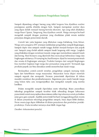 dan swasta di lingkungan setempat. Produksi kompos dari sampah lingkungan