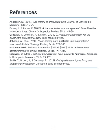 References Anderson The . Medicine M 21. Brown ., & , . M Advances to . , 25 Galloway , ., Fracture healthcare . Johnson - Journal , 54 ]385. National Role athletic . Robinson Orthopedic . in L Smith ., ., & , . Orthopedic medicine . : 14