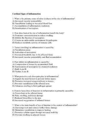 1. What is the primary cause of rubor (redness) at the site of inflammation?