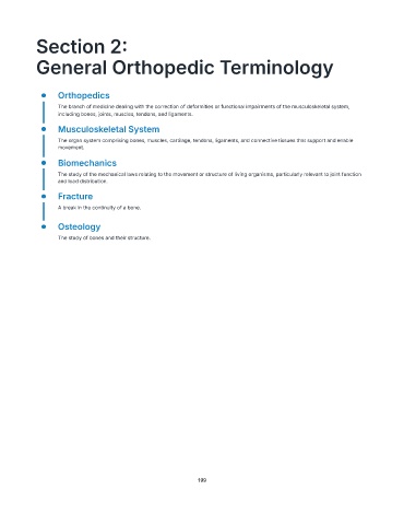 Section General Orthopedics The , including , , , , . Musculoskeletal The , , , , , movement Biomechanics The , and . Fracture A . Osteology The . 199