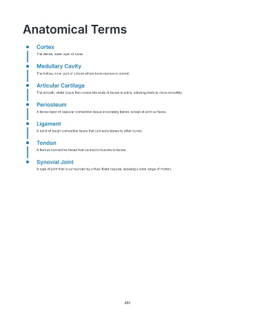 Anatomical Cortex The , . Medullary The , . Articular The , , . Periosteum A , . Ligament A . Tendon A . Synovial A -filled , . 203
