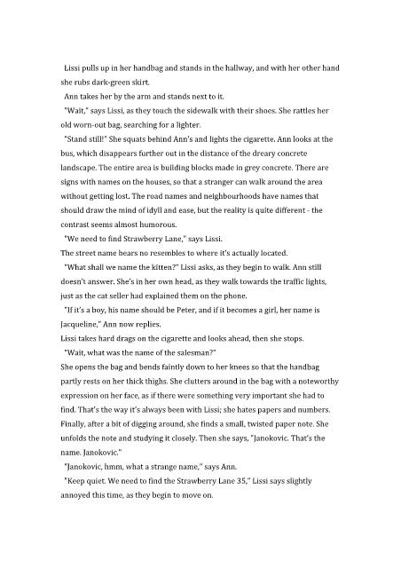 "What shall we name the kitten?" Lissi asks, as they begin to walk. Ann still