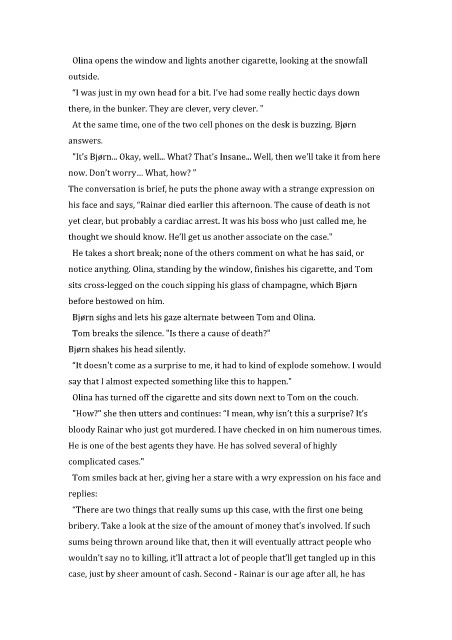 Bjørn sighs and lets his gaze alternate between Tom and Olina.