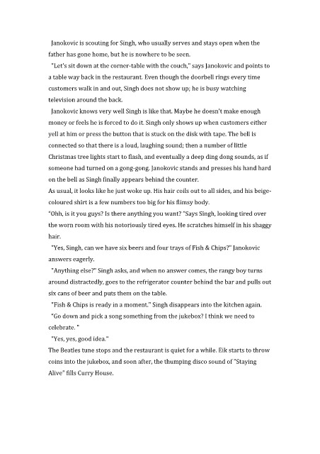 "Fish & Chips is ready in a moment." Singh disappears into the kitchen again.