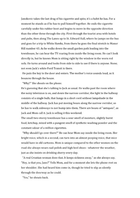 "Hey, is that you, Jano?" Yells Mom, and for a moment she lets the phone rest on