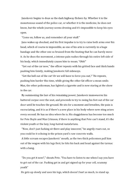 A little scream escapes Janokovic’ mouth, as the two thick policemen pull him
