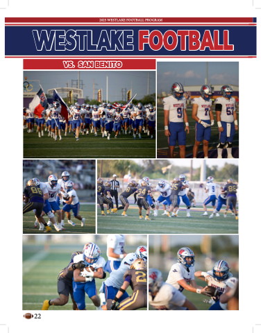 2025 WESTLAKE FOOTBALL PROGRAM WESTLAKE WESTLAKE FOOTBALL FOOTBALL VS. San Benito VS. San Benito 22