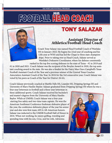 Coach Tony Salazar was named Head Football Coach of Westlake