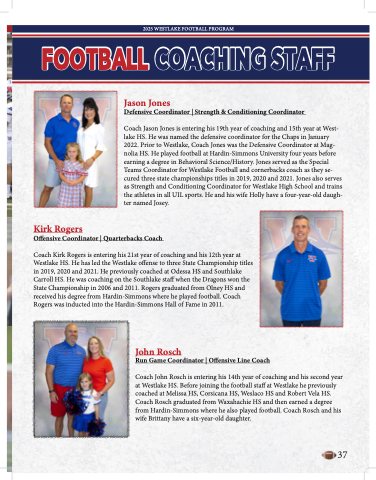 2022. Prior to Westlake, Coach Jones was the Defensive Coordinator at Mag-