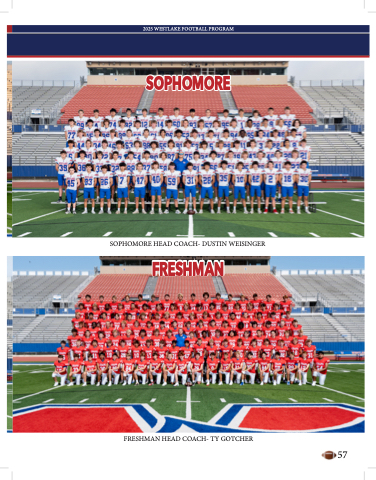 2025 WESTLAKE FOOTBALL PROGRAM SOPHOMORE SOPHOMORE SOPHOMORE HEAD COACH- DUSTIN WEISINGER FRESHMAN FRESHMAN FRESHMAN HEAD COACH- TY GOTCHER 57