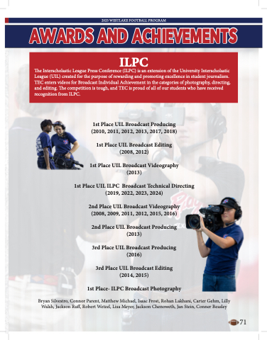 and editing. The competition is tough, and TEC is proud of all of our students who have received