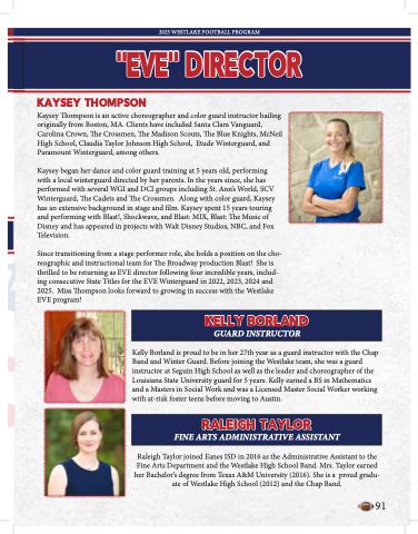 Band and Winter Guard. Before joining the Westlake team, she was a guard