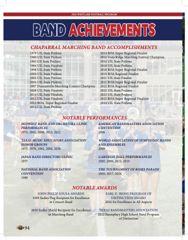 CHAPARRAL MARCHING BAND ACCOMPLISHMENTS