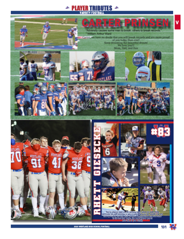 PLAYER TRIBUTES Varsity Football 2020 Westlake High School FOOTBALL 131