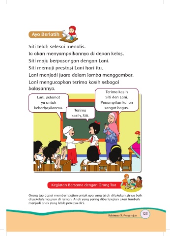 Orang tua dapat memberi pujian untuk apa yang telah dilakukan siswa baik
