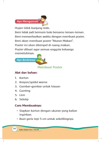 Beni akan membuat poster “Aturan Makan”.