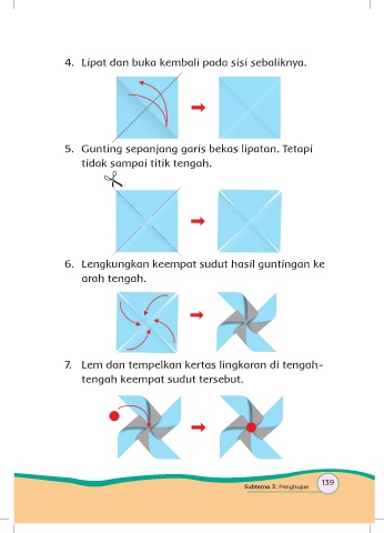 6.  Lengkungkan keempat sudut hasil guntingan ke