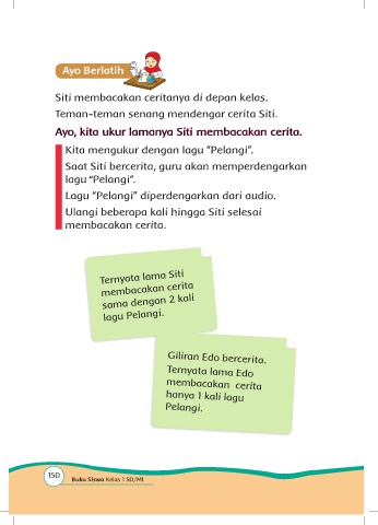 Ayo, kita ukur lamanya Siti membacakan cerita.