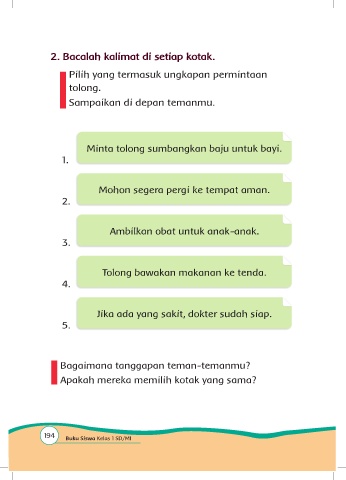 2. Bacalah kalimat di setiap kotak.