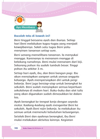 sekolah. Ayah Beni rajin bekerja. Ia melakukan itu