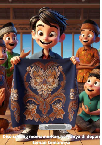 Dito sedang memamerkan karyanya di depan teman-temannya
