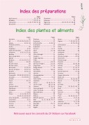 Oignon ................ 7, 13, 18, 19, 21, ................................ 31, 35, 39, 60 Orthosiphon ............................. 15 Ortie ......................................... 42 Oseille....................................... 25 Pâquerette ................................ 46 Partenelle ................................... 7 Passiflore ............................ 40, 51 Pensée sauvage .................. 24, 62 Pervenche................................. 16 Piment rouge ........................... 12 Pissenlit .................................... 17 Plantain ........................ 20, 30, 58 Poireau ............................... 19, 56 Poivre ........................... 11, 56, 57 Pomme ......................... 10, 31, 36 Pomme de terre ................. 21, 56 Pruneau .................................... 39 Queues de cerise ...................... 11 Radis noir.................................. 28 Romarin .................. 20, 30, 38, 45 Ronce............................ 14, 43, 58 Rose .......................................... 11 Sarriette .................................... 46 Sauge ................ 20, 30, 31, 46, 55 Souci ........................................ 18 Sureau ................................ 37, 53 Thé vert ............................... 16,46 Thuya ........................................ 18 Thym................. 30, 34, 44, 46, 57 Tilleul .............................. 9, 37, 54 Tomate................................ 21, 25 Valériane ........................ 9, 11, 40 Verveine officinale .............. 50, 51 Yaourt ....................................... 21