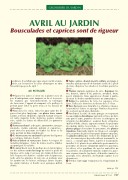 a Plantez oignons, pommes de terre. Repiquez lai- tue, batavia, choux d’été, poireau, artichaut, thym, persil, ciboulette. Vous apprécierez d’avoir à portée de main les herbes condimentaires ou aromatiques... a Buttez les pommes de terre, les asperges et les fèves. Taillez ces dernières au-dessus de la 5e fleur.
