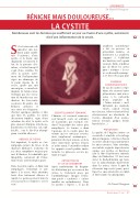 mer l’existence d’une cystite et la traiter, son diagnostic est souvent le fait de la patiente elle- même, a fortiori lorsqu’il s’agit d’une récidive. En effet, la cystite, autre- ment dit l’inflammation aiguë ou chronique de la paroi interne de la vessie, quelle que soit son origine, se manifeste toujours de façon carac- téristique par une sensa- tion de lourdeur ou une douleur du bas-ventre au-dessus du pubis, des brûlures urinaires et une envie très fréquente d’uriner (quelques gouttes à cha- que fois). Et, parfois, les urines deviennent troubles, signe d’une infection. En effet, la cystite est le plus souvent d’origine infectieuse, bactérienne (escherichia coli, coli- bacille...) ou le fait d’un champi- gnon (candida albicans).