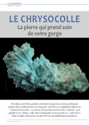 D’un beau vert-bleu, parfois carrément turquoise, le chrysocolle peut parfois être confondu avec la turquoise. Au Pérou, on l’appelle d’ailleurs la « turquoise de Lima ». Le terme chrysocolle vient du Grec « Chrysos » qui signifie or et « Kolla » colle. Dans l’antiquité, le chrysocolle ou « colle d’or » était en effet utilisé pour souder l’or lors de la fabrication de bijoux.
