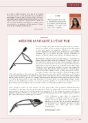 profonde conduit à la paix du corps et de l’esprit. L’exercice de base est de considérer que c’est le Soi qui respire (et non le Moi) à chaque inspir, à chaque expir, porteur du souffle initialement pur de la vie, net- toyant, apaisant, reposant et régénérant. Le souffle du Soi est vivant, tonifiant, vivifiant par sa simple nature sans salissures, au contraire du Moi, porteur et trans- metteur des émotions perturbatrices.