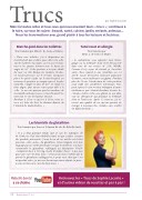 Merci à toutes celles et tous ceux qui nous envoient leurs « trucs » ; continuez à le faire, sur tous les sujets : beauté, santé, cuisine, jardin, enfants, animaux... Nous les transmettons avec grand plaisir à tous les lecteurs et lectrices.
