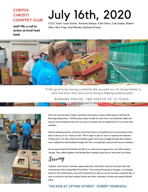 volunteering at the Coastal Bend Food Bank. From sorting thousands of oranges, to arranging