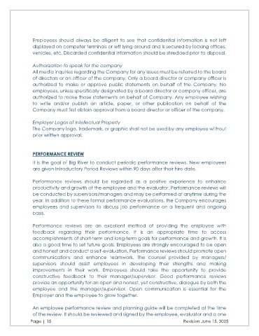 It is the goal of Big River to conduct periodic performance reviews. New employees