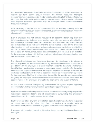how Big River may be able to provide a reasonable accommodation. To the extent