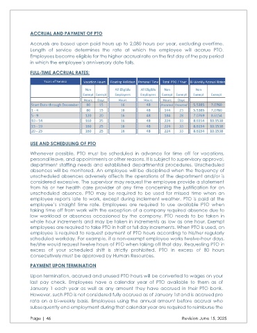 excess of your scheduled shift is strictly prohibited. PTO in excess of 80 hours